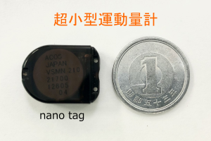 運動量計測装置 nanotag(ナノタグ)は、実験用小動物(マウス、ラット)の体内に埋め込んだ状態で運動量と温度を計測します。